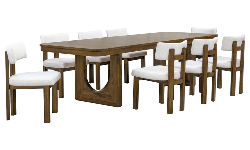 مجموعة تناول الطعام من Coaster’s Cardona مصنوعة من خشب الماهوجني الصلب، وهي متوفرة في كل من الخيارات الرسمية وغير الرسمية. مقترنة بكراسي تناول الطعام المنحوتة ذات الظهر المنحني العميق التي توفر راحة استثنائية، مما يجعل كل تجمع أنيقًا وجذابًا. صالة العرض: 111 E. شارع التجارة.