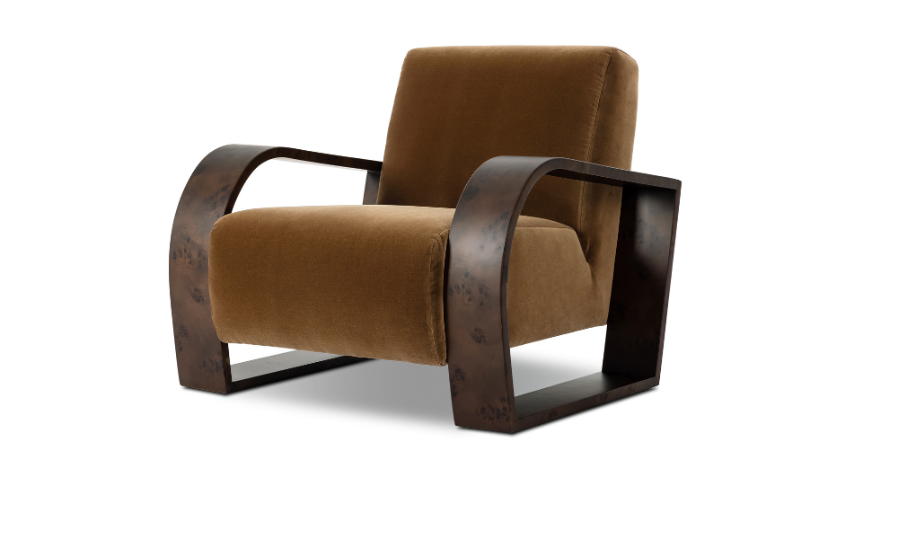 يتم إقران المقاعد الفخمة العميقة في المخمل عالي الوبر بإطار مبالغ فيه مستوحى من فن الآرت ديكو في عشرينيات القرن العشرين في هذا الكرسي من Four Hands. تم نحت أذرعها المصنوعة من الخشب المنحني من عقدة مابا لمزيد من الحركة في جميع أنحاء القطعة. صالة العرض: صالة العرض، الطابق 4