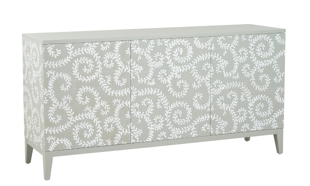 يتميز بوفيه Isabella الجديد ذو 3 أبواب من Bassett Furniture بتصميم أنيق ومرسوم يدويًا وجريئ بما يكفي ليبرز ودقيق بما يكفي للاندماج فيه. صالة العرض: IHFC, C1200