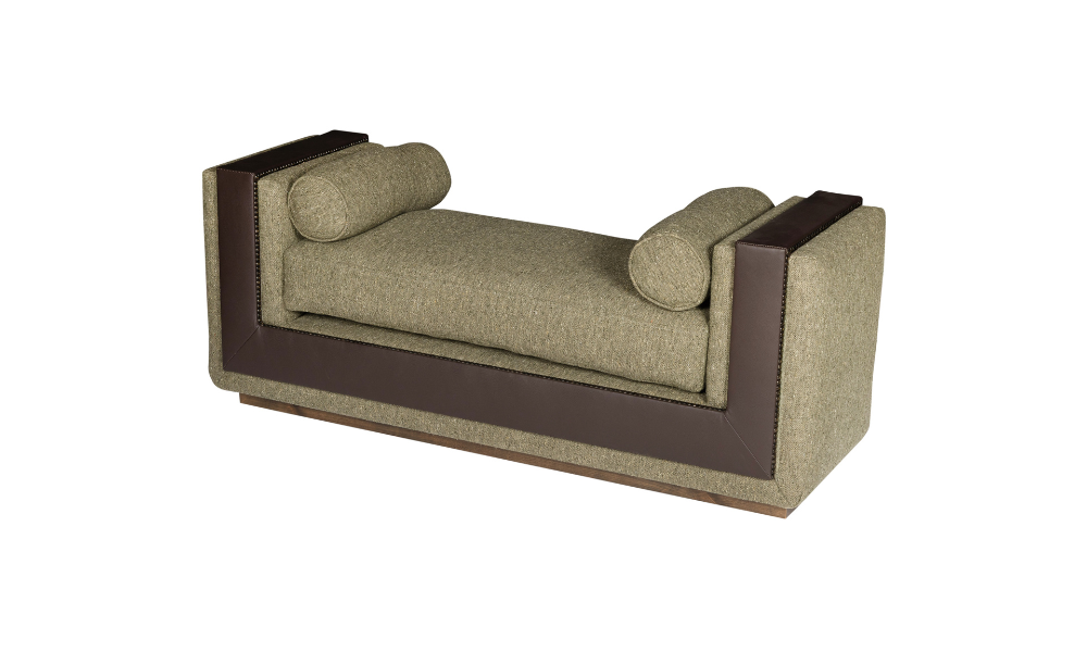يتم تعريف مقعد Strati Bench من Moss Home بخطوط مخصصة ونهايات داعمة. تؤكد تفاصيل رأس الأظافر والخياطة العلوية على البناء، بينما تعمل القاعدة الخشبية على تثبيت القطعة بحضور معماري راسخ. صالة العرض: القاعة العريضة، معرض كوداروس، الدور الثالث