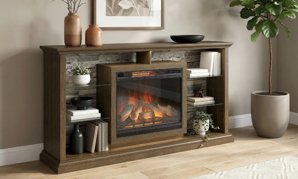تم تصميم وحدة التحكم بالوسائط Twin Star Home هذه والمزودة بمدفأة كهربائية لترسيخ غرفة المعيشة بأناقة وراحة، وهي تمزج بين الطابع الريفي والوظائف الحديثة. تخلق اللوحة الخلفية الحجرية والرفوف المدمجة وإضاءة شاشة LED الناعمة نقطة محورية دافئة متعددة الطبقات أسفل أجهزة التلفاز التي يصل حجمها إلى 80 بوصة. سخان كهربائي قوي بقدرة 5200 وحدة حرارية بريطانية يسخن ما يصل إلى 1000 قدم مربع ويتميز بمنظم حرارة رقمي وجهاز تحكم عن بعد وتقنية أكثر أمانًا مدمجة لمزيد من راحة البال. المعرض: السوق على الأخضر، مساحة 602