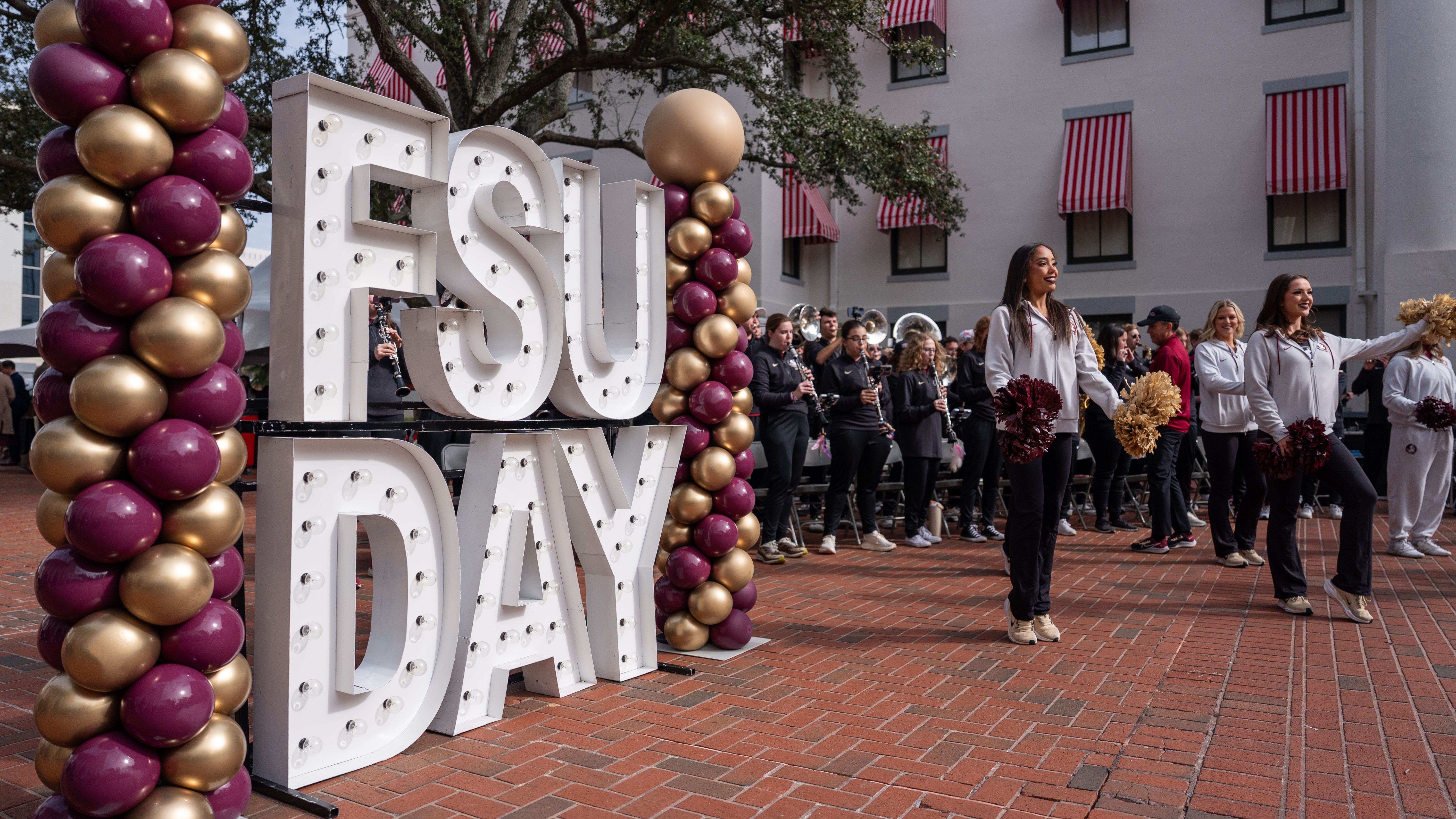 يؤدي The Marching Chiefs والمشجعون أداءً في بداية يوم FSU في مبنى الكابيتول.